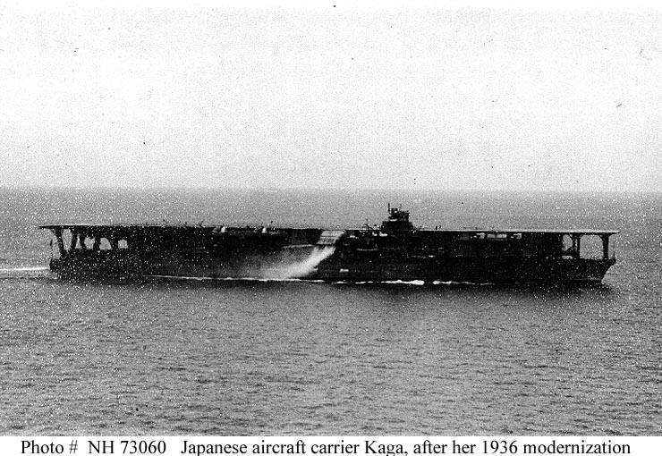 Photo #: NH 73060 Kaga (Japanese Aircraft Carrier, 1921-1942) At sea following her 1934-36 modernization. Donation of Kazutoshi Hando, 1970. U.S. Naval History and Heritage Command Photograph. Online Image: 114KB; 740 x 510 pixels |