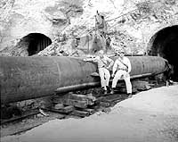 Photo #: 80-G-379158 Japanese "Kairyu" Type Midget Submarine Outside its cave hideaway in a Japanese coastal hillside, 22 September 1945. The men alongside it are from USS Boston (CA-68), one of whose photographers took this photo. Official U.S. Navy Photograph, now in the collections of the National Archives. Online Image: 110KB; 740 x 615 pixels Reproductions of this image may also be available through the National Archives photographic reproduction system. |