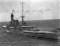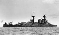 HMS Hood, a 42,100-ton battlecruiser built at Clydebank, Scotland, was completed in March 1920. For more than two decades, she was the World's largest warship and, with her long, low hull and finely balanced silhouette, was to many the embodiment of "big-gun" era seapower. During her travels in European waters and far away, Hood actively represented Great Britain throughout her career. Her first cruise, in 1920, was to Scandanavia. The next year she went down to Gibraltar and Spain and in 1922 visited Brazil and the West Indies. After a brief call on Denmark and Norway in 1923, Hood was flagship on a eleven-month cruise around the World, accompanied by the smaller battlecruiser Repulse and a number of light cruisers. In 1925, she called on Lisbon to help commemorate Portugal's contributions to navigation and exploration.