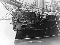 Closeup photograph of the ship's bow, taken in port after 1875,