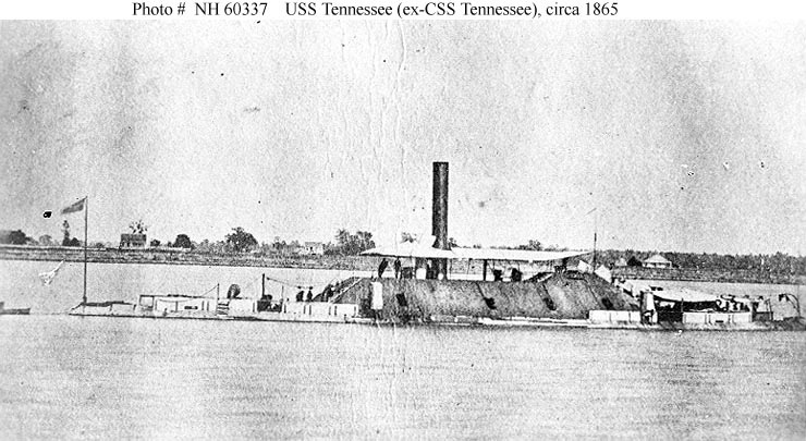 Photo #: NH 51951 USS Tennessee (1864-1867) Photographed circa 1865, probably off New Orleans, Louisiana. She was formerly CSS Tennessee (1864-1864). U.S. Naval Historical Center Photograph. Online Image: 83KB; 740 x 560 pixels |