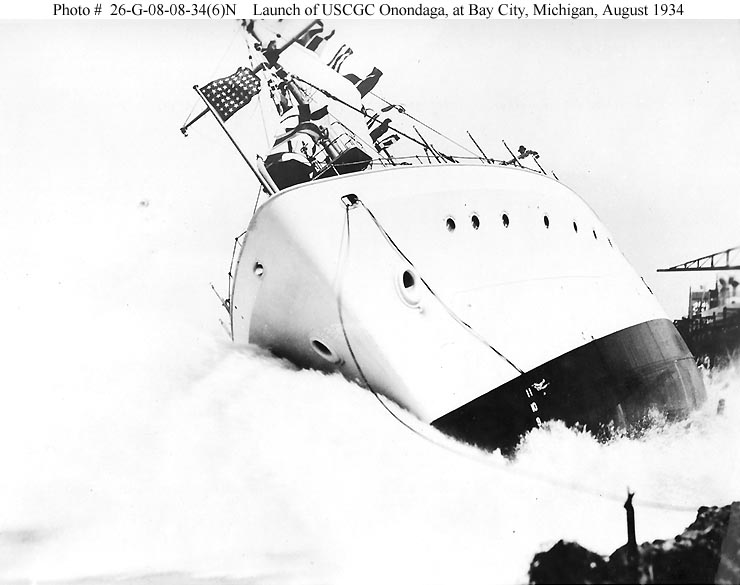 USCGC Onondaga, a 1005-ton "165-foot (A)" class cutter built at Bay City, Michigan, was commissioned in September 1934. She was stationed at Astoria, Oregon, during the remainder of that decade and into the next. During World War II Onondaga was employed in Alaskan waters for escort and patrol work. She was present at Dutch Harbor, Unalaska Island, during the June 1942 Japanese air attacks on that U.S. base. After brief post-war service, USCGC Onondaga was decommissioned in July 1947 and sold in December 1954.