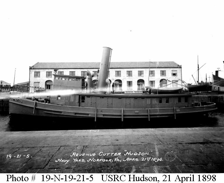 USRC Hudson, a 128-ton tug, was built at Camden, New Jersey. Commissioned in September 1893, she was assigned to duties in the New York Harbor area for almost all of her career. During the Spanish-American War, she also operated off Cuba, and rescued USS Winslow while under enemy fire at Cardenas in May 1898. Hudson returned to New York after the war. She decommissioned in May 1935.
