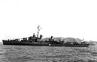 Photo #: 19-N-86927 USS Adams (DM-27) Off the Mare Island Navy Yard, California, in late June 1945, following repair of Kamikaze damage. Photograph from the Bureau of Ships Collection in the U.S. National Archives. Online Image: 59KB; 740 x 500 pixels Reproductions of this image may also be available through the National Archives photographic reproduction system. |