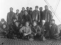 Photo #: NH 53062 USS Black Hawk (ID # 2140) "Crewmembers smiling now that they have returned to home waters after two and a half years as part of the U.S. minesweeping fleet, 23 November 1919." (quoted from the original 1919-vintage caption) Black Hawk initially deployed to the British Isles in June 1918 and returned to the U.S. in November 1919, a period of nearly one and a half years. U.S. Naval Historical Center Photograph. Online Image: 87KB; 740 x 570 pixels |