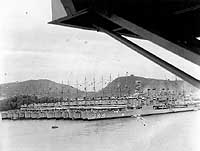 Photo #: 80-G-455906 Balboa Harbor, Panama Canal Zone Aerial photograph taken 23 April 1934, with U.S. Fleet cruisers and destroyers moored together. Most of the ships present are identified in Photo # 80-G-455906 (extended caption). Official U.S. Navy Photograph, now in the collections of the National Archives. Online Image: 298KB; 1200 x 970 pixels Reproductions of this image may also be available through the National Archives photographic reproduction system. |