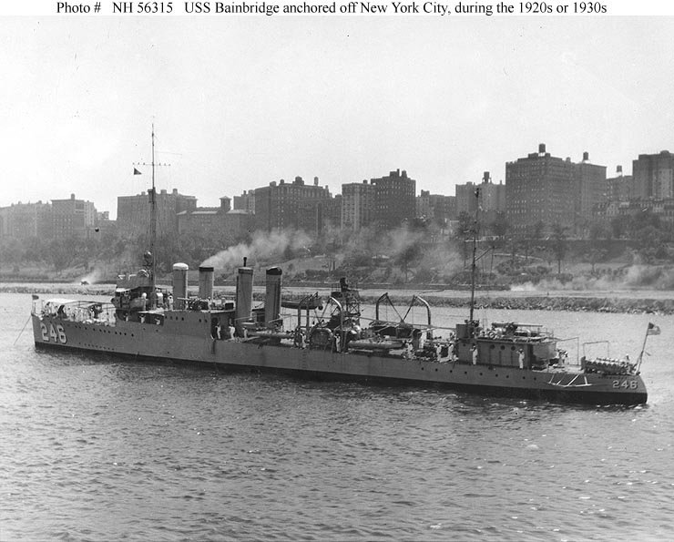 Photo #: NH 56315 USS Bainbridge (DD-246) Anchored off New York City, during the 1920s or 1930s. U.S. Naval Historical Center Photograph. Online Image: 85KB; 740 x 595 pixels |