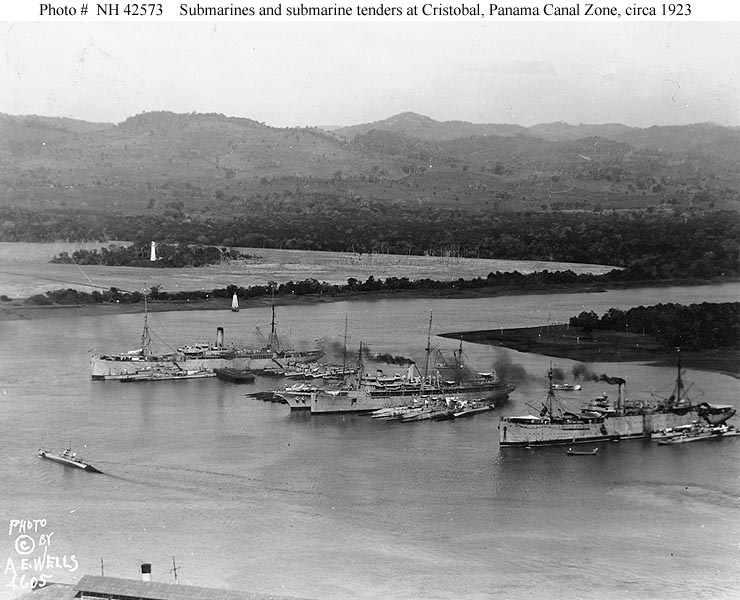Off Gonaives, Haiti, in 1925, with several submarines alongside.