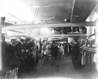 Photo #: NH 52452 USS Charleston (C-2) Three-legged race on board Charleston during Thanksgiving Day celebrations at Rio de Janeiro, Brazil, November 1893. Participants include British and German sailors. The onlookers appear to be of mixed nationalities, as well. Courtesy of Captain Henry F. Picking, 24 December 1893. U.S. Naval Historical Center Photograph. Online Image: 92KB; 740 x 625 pixels |