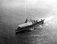 USS Cabot, a 11,000-ton Independence class small aircraft carrier, was built at Camden, New Jersey. Converted while under construction from the light cruiser Wilmington (CL-79), she was commissioned in July 1943. Early in 1944, Cabot arrived in the Pacific war zone and immediately became part of the Pacific Fleet's fast carrier striking force. She participated in all the Fleet's major carrier actions from then until the end of World War II, notably including the Marshalls Operation, the Battle of the Philippine Sea, the Battle of Leyte Gulf, raids on the Philippines and other Pacific islands, the Iwo Jima Operation, carrier strikes on Japan and the Okinawa Campaign. She was damaged by Japanese Kamikazes on 25 November 1944, but remained in operation despite casualties to her crew and structure.