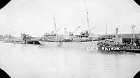 Photo #: NH 106362 USS Canonicus (ID # 1696) Arriving off Newport News, Virginia, with homeward bound troops from France, 10 July 1919. Panoramic photograph by Holladay, Newport News. The harbor tug Maren Lee is assisting Canonicus. Donation of Dr. Mark Kulikowski, 2008. U.S. Naval History and Heritage Command Photograph. Online Image: 136KB; 2000 x 510 pixels |