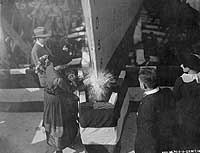Ship's Sponsor, Emma DeLong Mills, during launching ceremonies
