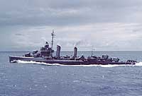 Photo #: 80-G-K-15590 (Color) USS Edwards (DD-619) Underway in the Caribbean Sea during her shakedown period, circa November 1942. Official U.S. Navy Photograph, now in the collections of the National Archives. Online Image: 66KB; 740 x 530 pixels Reproductions of this image may also be available through the National Archives photographic reproduction system. Note: This image has been cropped to emphasize the ship. The original transparency in the National Archives shows considerably more ocean and sky. |