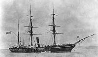 USS Enterprise, a 1375-ton (displacement) steam sloop of war built at the Portsmouth Navy Yard, Kittery, Maine, was commissioned in mid-March 1877. She performed surveying duties at the mouth of the Mississippi River and in South American rivers during the next year and a half. Late in 1878 Enterprise began a tour in European waters. When this ended in the spring of 1880 she was laid up at the Washington Navy Yard. After returning to active service early in 1883, the ship operated along the U.S. East Coast for nearly a year, then began a world-wide hydrographic cruise that lasted until March 1886. Her next deployment, from January 1888 to March 1890, took Enterprise to Europe, the Mediterranean and along Africa's Atlantic coast.