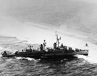 In the early hours of 18 July 1965, while underway at sixteen knots in the South China Sea, USS Frank Knox ran hard aground on Pratas Reef, some two hundred miles east south east of Hong Kong. A salvage effort was immediately begun, and soon involved salvage ships Grapple and Conserver, tugs Munsee, Cocopa and Sioux and submarine rescue ship Greenlet. Though Frank Knox was initially only somewhat damaged, several attempts to pull her free between 20 July and 2 August were unsuccessful, and the ship was driven further onto the rocks by waves from a pair of passing typhoons. She was now much more severely holed, with machinery spaces flooded and hull structure weakened.
