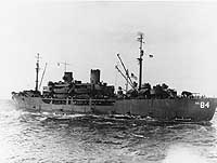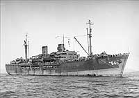 USS Garrard, a 4,247-ton Gilliam-class attack transport, was built at Wilmington, California, and was commissioned in March 1945. After shakedown training on the West Coast, Garrard departed Seattle in May with an Army Aviation Engineers unit, which she landed under Japanese air attack at Okinawa in late June. She then loaded replacement personnel, cargo, and mail at Leyte and delivered them by highline to units of the 3d Fleet, then operating off the Japanese coast. After serving briefly as a receiving ship at Eniwetok, she sailed a day before the Japanese surrender on another resupply mission to the 3d Fleet.