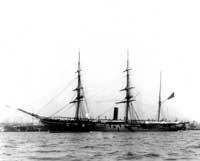 USS Galena, a 1900-ton steam screw sloop built at the Norfolk Navy Yard, Virginia, was commissioned in August 1880. Her initial deployment was to the eastern Atlantic and the Mediterranean in 1881-82, followed by a tour as flagship of the South Atlantic Squadron. The remainder of her service was spent off the U.S. and Canadian east coasts and in the Caribbean area. In March 1891, while out of commission and under tow of a tug, Galena went ashore on Martha's Vinyard, Massachusetts. Though salvaged, repairs were deemed too costly and she was sold in May 1892.