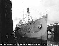 Photo #: NH 53880 USS George Washington (ID # 3018) In port at New York, 14 June 1918, showing her pattern camouflage and the decoration on her bow bulwark. Photographed by the New York Navy Yard. U.S. Naval History and Heritage Command Photograph. Online Image: 70KB; 600 x 765 pixels |