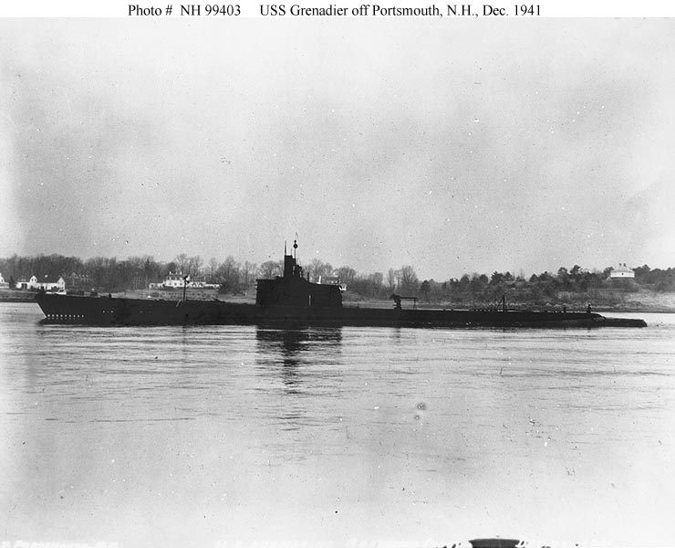 Photo #: NH 99403 USS Grenadier (SS-210) Off Portsmouth, New Hampshire, 27 December 1941. Official U.S. Navy Photograph, from the collections of the Naval History and Heritage Command. Online Image: 65KB; 740 x 600 pixels |