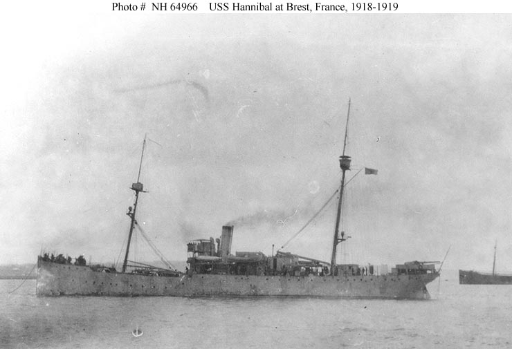 In mid-1911 Hannibal was converted to a surveying ship, serving in the Caribbean and along the Central American coast until the United States entered World War I in April 1917. For much of the war's first year she was attached to the Atlantic Fleet's Patrol Force, with her missions including assisting submarine chasers and other ships as they made the long passage to the European war zone. In 1918 Hannibal became a submarine chaser tender at Plymouth, England, a job she held until after the 11 November Armistice halted the fighting. Late in the year she began escorting subchasers back to the Western Hemisphere, by way of the Azores, and also served in the Caribbean before being laid up in mid-1919.