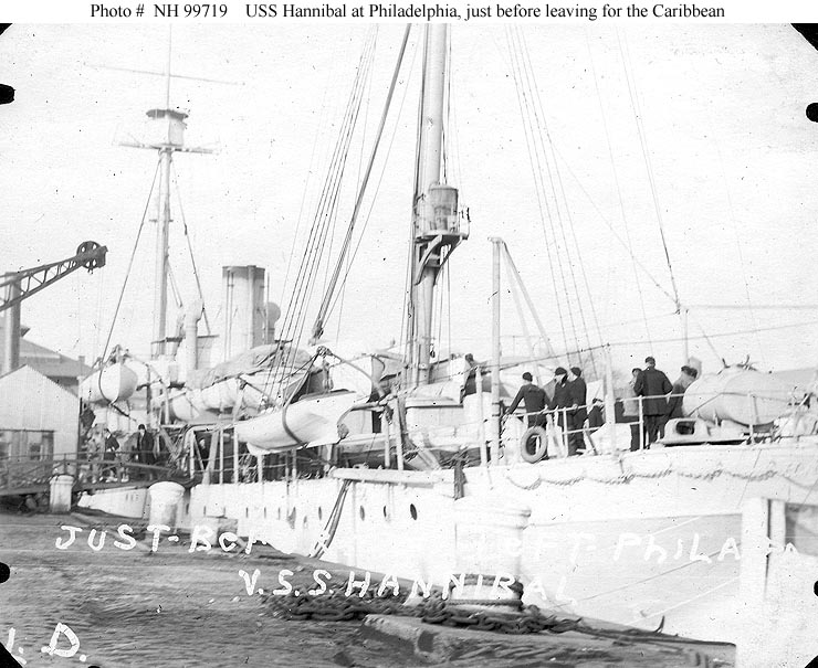 USS Hannibal, a 4000-ton collier, was completed in 1898 at Sunderland, England, as the commercial steamship Joseph Holland. The crisis leading to the Spanish-American War resulted in her purchase by the U.S. Navy in mid-April of that year and the ship was placed in commission that June. She carried coal in support of the Navy's operating forces during the rest of the short conflict, and continued that vital work along the Atlantic coast and in the Caribbean area during the next dozen years.