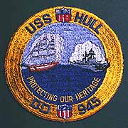Photo #: NH 68390-KN (Color) USS Hull (DD-945) Jacket patch of the insignia used in 1966. Courtesy of Captain G.F. Swainson, USN, 1969. U.S. Naval Historical Center Photograph. Online Image: 174KB; 650 x 675 pixels |
