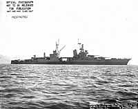 Photo #: 19-N-76902 USS Indianapolis (CA-35) Off the Mare Island Navy Yard, California, 9 December 1944, following overhaul. Photograph from the Bureau of Ships Collection in the U.S. National Archives. Online Image: 73KB; 740 x 610 pixels Reproductions of this image may also be available through the National Archives photographic reproduction system. |