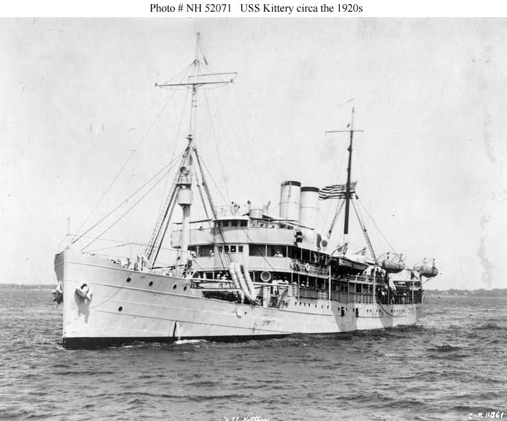 Photo #: NH 52071 USS Kittery (AK-2) Photographed circa the 1920s. U.S. Naval History and Heritage Command Photograph. Online Image: 75KB; 740 x 615 pixels |
