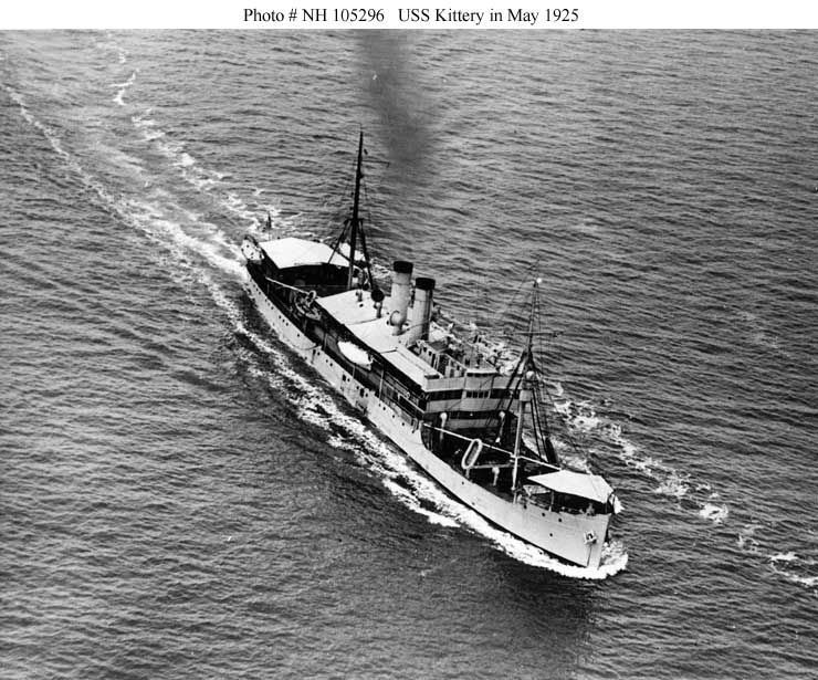 Photo #: NH 52072 USS Kittery (AK-2) Departing Hampton Roads, Virginia, on 7 May 1925. U.S. Naval History and Heritage Command Photograph. Online Image: 116KB; 740 x 570 pixels |