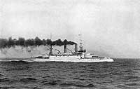 In December 1907 Kearsarge began a long voyage around South America, the first leg of a cruise around the World in company with most of the Navy's battleships. This "Great White Fleet" arrived at California in the spring of 1908 and, after refitting, crossed the Pacific to visit Australia, New Zealand, the Philippines and Japan. Kearsarge returned to the U.S. in February 1909, at the conclusion of a homeward-bound voyage that took her through the Indian Ocean and the Mediterranean. She decommissioned in September 1909 for modernization, work that included fitting new "cage" masts and other improvements. The battleship was only occasionally active during the next several years, largely on training duties, but also serving off Mexico in 1915-1916. After the U.S. entered World War I she operated as an armed guard and engineering training ship along the East Coast. On 18 August 1918 she rescued survivors of a sailing ship that had been sunk by a German submarine.