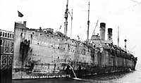 Photo #: NH 100556 Kroonland (American Passenger Steamer, 1902) Photographed prior to World War I, during and after which this liner served as USS Kroonland (ID # 1541). Commissioned on 25 April 1918, she was decommissioned and returned to her owner on 1 October 1919. U.S. Naval History and Heritage Command Photograph. Online Image: 36KB; 740 x 225 pixels |