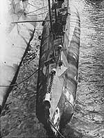 Photo #: NH 52201 USS K-8 (Submarine # 39) Exterior conning station and periscopes. These long and short 2½ to 5-inch diameter Kollmorgen Type C periscopes were obtained under a contract dated 23 October 1916 and subsequently installed at the Pearl Harbor Navy Yard. The photograph may have been taken there in late 1916 or in 1917. The evaluation of both of these non-housing periscopes (which had Submarine Periscope Registry Numbers 167 for the shorter unit, and 168 for the longer) was "A fairly good instrument". U.S. Naval Historical Center Photograph. Online Image: 58KB; 740 x 495 pixels |