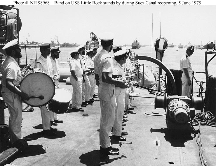 On 5 June 1975, after having been closed since the June 1967 war between Egypt and Israel, the Suez Canal was formally reopened for business. USS Little Rock, flagship of the U.S. Sixth Fleet, represented the United States at the ceremonies, which were held at Port Said. According the the 1976 "Naval Review", she was the "only foreign warship in the official flotilla that sailed down the canal to Ismalia" on this occasion.