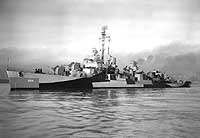 USS Luce, a 2030-ton Fletcher class destroyer built at Staten Island, New York, was commissioned in June 1943. She went to the Pacific in the fall and from November 1943 into August 1944 operated in the Alaskan and Aleutian Islands area. On 3-4 February and in June 1944 Luce participated in three bombardments of Japanese facilities in the Kurile Islands. Later in the year the destroyer went to the south Pacific and in October took part in the invasion of Leyte. She was employed on escort and patrol missions in the Admiralty Islands and off New Guinea for the rest of 1944.