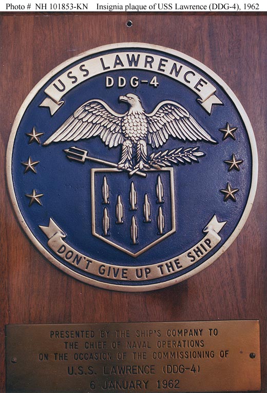 This page features all our views of USS Lawrence (DDG-4) and her insignia, plus selected views related to her construction.