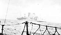 Photo #: NH 1096 USS Leviathan (ID # 1326) Leaving New York City carrying nearly 14,500 persons, including troops and ship's personnel, circa July 1918. In the foreground is the cruiser USS New Orleans, which was at anchor at Thompkinsville, N.Y. Courtesy of Captain Edgar B. Larimer, USN, 1931. He was New Orleans' Commanding Officer at the time this photograph was taken. U.S. Naval Historical Center Photograph. Online Image: 56KB; 740 x 460 pixels |