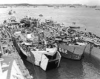 Photo #: 80-G-379469 USS LST-646 and USS LST-662 Entering the floating drydock ABSD-6 in Apra Harbor, Guam, 29 May 1945. Official U.S. Navy Photograph, now in the collections of the National Archives. Online Image: 122KB; 600 x 765 pixels Reproductions of this image may also be available through the National Archives photographic reproduction system. |