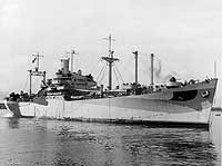 USS Mount Hood, a 13910-ton ammunition ship, was built at Wilmington, North Carolina, and converted for Naval service at Norfolk, Virginia. Commissioned in July 1944, she transited the Panama Canal in August and was assigned to the South Pacific area to provide ammunition to the fighting forces. On the morning of 10 November 1944, while she was moored at the Manus Naval Base, Admiralty Islands, Mount Hood's cargo of explosives detonated in a massive blast. The ship was utterly destroyed by the accident, which killed all those on board her. Damage and casualties were also inflicted on ships anchored as far as 2000 yards away. Personnel casualties on Mount Hood and on other vessels totalled 45 known dead, 327 missing and 371 injured.
