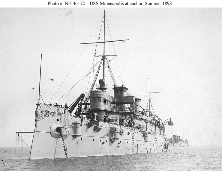 Photo #: NH 63591 USS Minneapolis (Cruiser # 13) Photographed while at anchor, 1898. U.S. Naval Historical Center Photograph. Online Image: 93KB; 740 x 640 pixels |