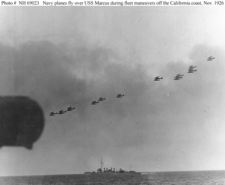 in formation over USS Marcus (DD-321) during the maneuvers.