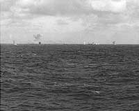 Photo #: NH 50949 Wake Island Raid, 24 February 1942 A Japanese patrol boat (black smudge to the right) under attack by gunfire from USS Balch (DD-363) and USS Maury (DD-401) and aircraft from USS Enterprise (CV-6), during the Wake Island raid. Photographed from USS Salt Lake City (CA-25). U.S. Naval Historical Center Photograph. Online Image: 108KB; 740 x 615 pixels |