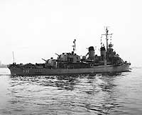 USS Miller, a 2050-ton Fletcher class destroyer, was built at San Francisco, California. Commissioned in at the end of August 1943, she conducted initial training operations along the West Coast and in Hawaiian waters before arriving in the Pacific combat area in January 1944. During the following weeks the new destroyer participated in the invasion of the Marshall Islands, performing escort and gunfire support duties. In late February Miller began service as part of the screen of the fast carrier task forces. In this role she participated in the carriers' March-May raids throughout the central Pacific and on northern New Guinea. In the course of the rest of 1944 she took part in the conquest of the Marianas, including the Battle of the Philippine Sea in June; the assault on the Palaus in September; raids against enemy positions in the western Pacific and on Asian mainland; and the October Battle of Leyte Gulf. On 26 October, during the latter operation, she used her guns to help sink the Japanese Destroyer Nowaki.