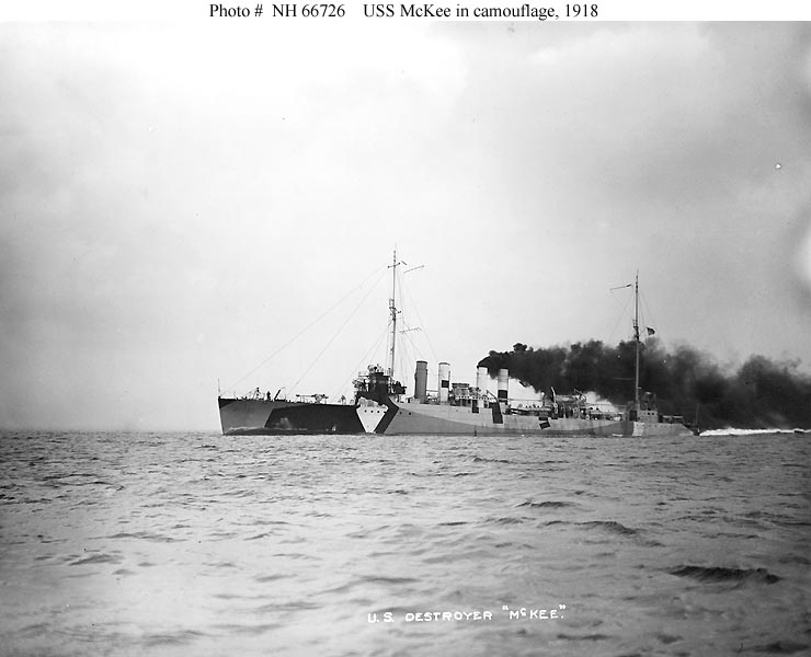 Photo #: NH 66726 USS McKee (Destroyer # 87) Painted in pattern camouflage, circa the late summer or fall of 1918. U.S. Naval Historical Center Photograph. Online Image: 54KB; 740 x 600 pixels |