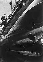 Halftone reproduction of a photograph taken in drydock at Brest,