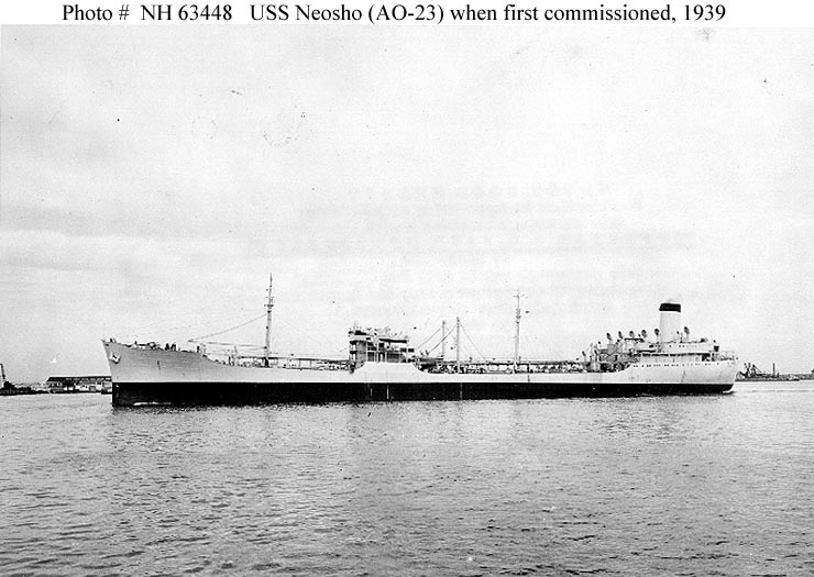 Photo #: NH 63448 USS Neosho (AO-23) At the time of her commissioning, circa mid-1939. U.S. Naval Historical Center Photograph. Online Image: 78KB; 740 x 525 pixels |