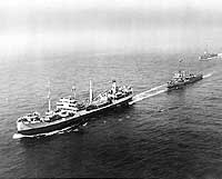 Photo #: 80-G-245464 USS Mattole (AO-17) Refuels USS Pride (DE-323) by the astern method, 17 August 1944. USS Newell (DE-322) is approaching, from the far right. Official U.S. Navy Photograph, now in the collections of the National Archives. Online Image: 82KB; 740 x 620 pixels Reproductions of this image may also be available through the National Archives photographic reproduction system. |