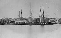 During September-December 1858 Niagara made a round-trip voyage to Monrovia, Liberia, transporting two hundred Africans who had been liberated that August when a slave ship was captured off Cuba by another U.S. warship. Beginning at the end of June 1860 she carried Japanese diplomats home from their historic visit to Washington, D.C. This long cruise ended in April 1861, just after the outbreak of the American Civil War, with Niagara's arrival at Boston. It was almost immediately followed by her first wartime assignment, blockade enforcement duty that produced the capture of the General Parkhill off Charleston, South Carolina on 12 May. On 5 June, off Mobile, Alabama, she took part in a cutting out expedition that captured the schooner Aid. Remaining in the Gulf of Mexico for almost another year, she served for some of that time as flagship of the East Gulf Blockading Squadron and, in November 1861, participated in a bombardment of Confederate fortifications at Pensacola, Florida.