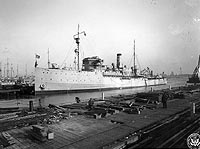Photo #: NH 61896 USS Oglala (CM-4) At the Pearl Harbor Navy Yard, following completion of salvage and initial repairs, circa December 1942. Oglala left Pearl Harbor for the west coast on 23 December of that year. She had been sunk in the 7 December 1941 Japanese raid on Pearl Harbor. Official U.S. Navy Photograph, from the collections of the Naval Historical Center. Online Image: 102KB; 740 x 615 pixels |