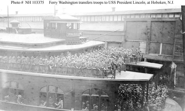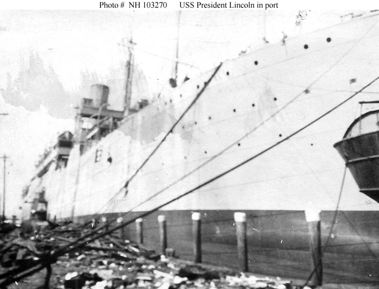 Alongside USS President Lincoln, at Hoboken, New Jersey,