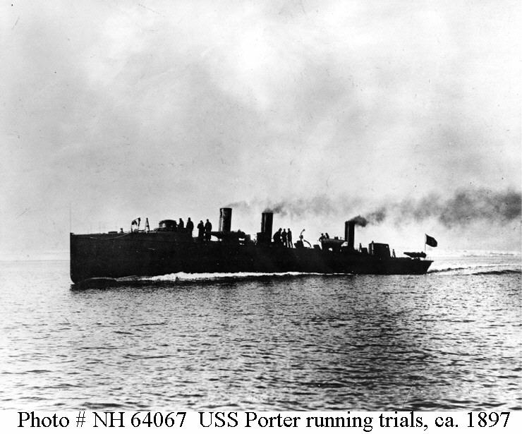 USS Porter, a 165-ton torpedo boat built at Bristol, Rhode Island, was commissioned in February 1897. She initially operated along the U.S. Atlantic and Gulf coasts, and served off Cuba, Haiti and Puerto Rico during the Spanish-American War. Post-war, she saw several brief periods of active duty, but mainly was part of the Reserve Torpedo Flotilla. Porter was stricken from the Navy List in November 1912 and sold the following month.